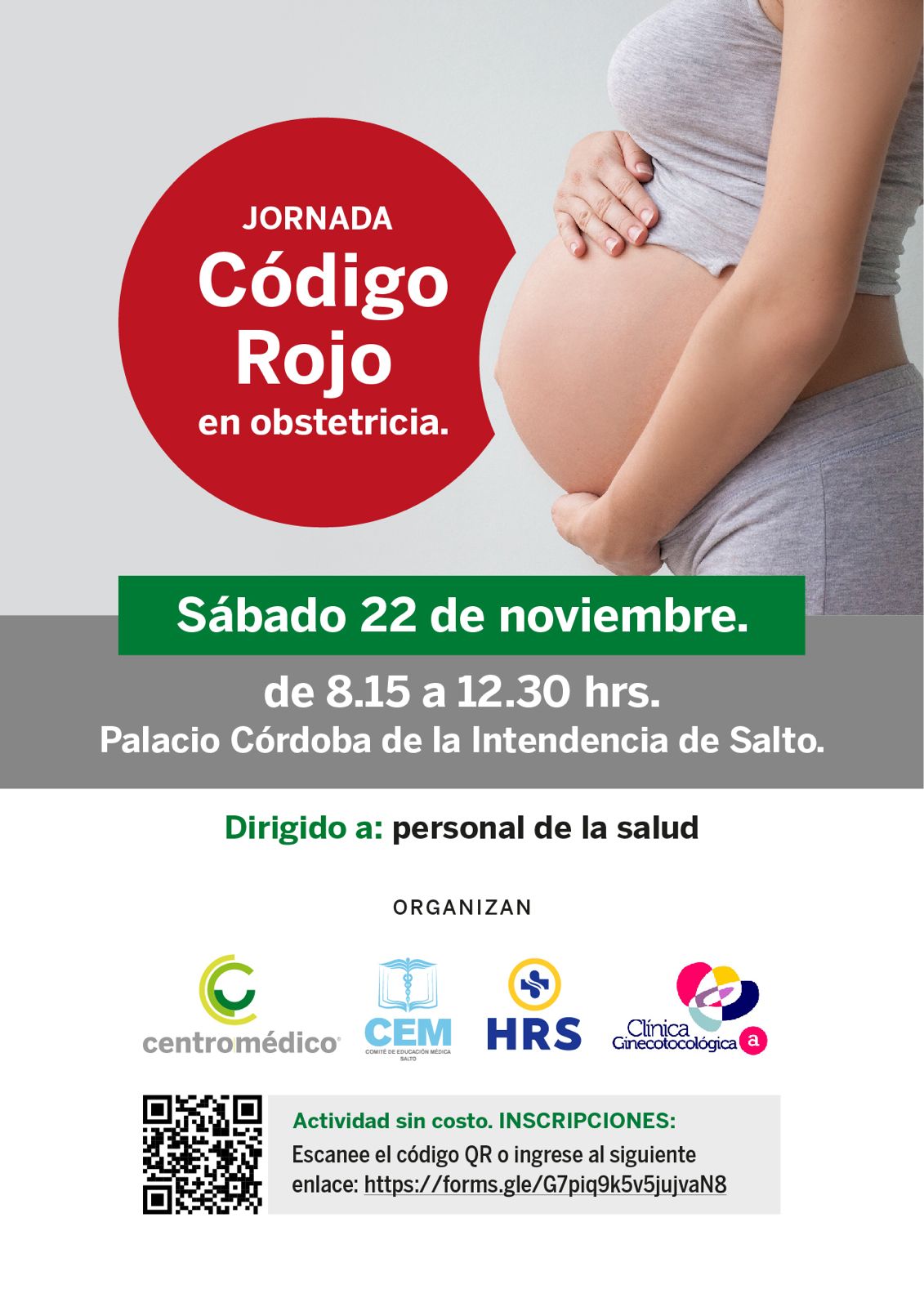 El próximo sábado 22 de noviembre, de 8.15 a 12.30 hrs. en el Palacio Córdoba de la Intendencia de Salto, se llevará a cabo la Jornada «Código Rojo en obstetricia», organizada por nuestra institución, junto al Hospital Regional Salto y la Clínica Ginecológica A. Es una actividad sin costo dirigida al personal de la salud.
