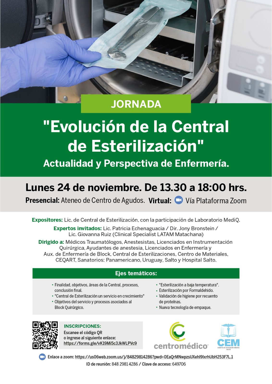 El lunes 24 de noviembre, de 13.30 a 18.00 hrs. bajo una modalidad híbrida (por zoom y presencial desde el Ateneo de nuestro Centro de Agudos), se llevará a cabo la Jornada «Evolución de la Central de Esterilización: actualidad y perspectiva de Enfermería». Expondran licenciadas de Central de Esterilización con la participación de integrantes del equipo de laboratorio Medi Q.